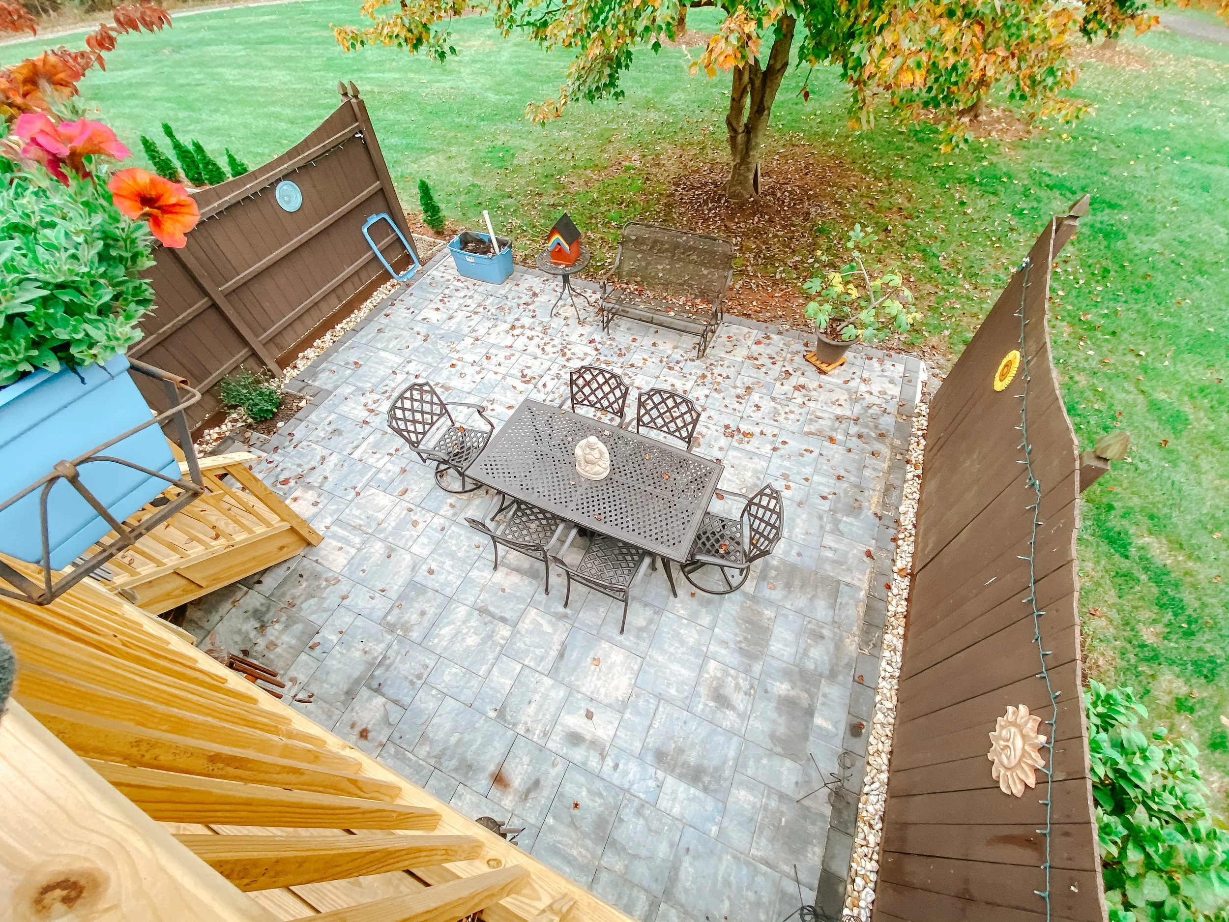 Upkeep is easy-peasy, lemon squeezy! When autumn leaves fall, you can simply sweep them off the pavers. Stains can usually be lifted with some lukewarm water and soap - and if damages somehow occur, it’s fairly easy to replace single tiles. With concrete patios, you would be faced with replacing an entire concrete slab.